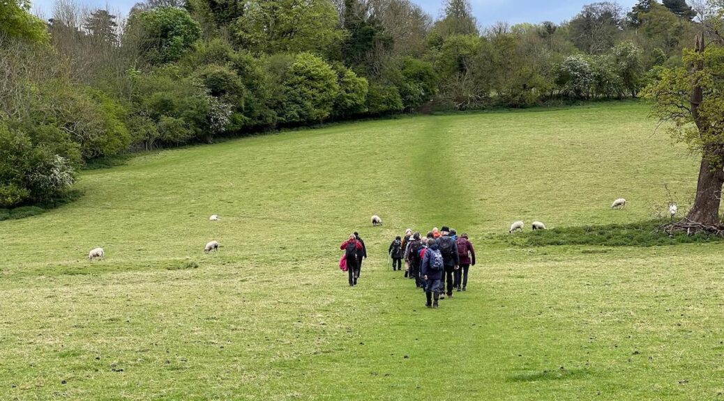 19 polyramblers set off from Henley station on a cloudy morning anticipating a fairly drizzly day. Due to very soggy conditions along the river experienced on the walkover the leader had opted for a high level route instead. We set off through the town and then went up via the Oxfordshire Way via Henley Park and through the village of Fawley until we entered the Great Wood. The views were lovely on the way up and we were delighted to see some newborn lambs.
