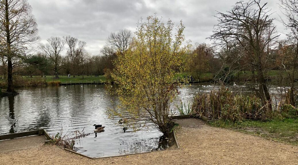 9 brave Polyramblers turned up at Manor Park station on an inauspicious day for a 6.5 miles walk through parklands. We started with flat Wanstead Flats, passing Alexandra Lake dug at the beginning of the 20th century to give work to unemployed men. The lake was named after Alexandra of Denmark, the Queen Consort of King Edward VII. Next was Wanstead Park where we walked along lakes, then crossed over the river Roding as the rain started.