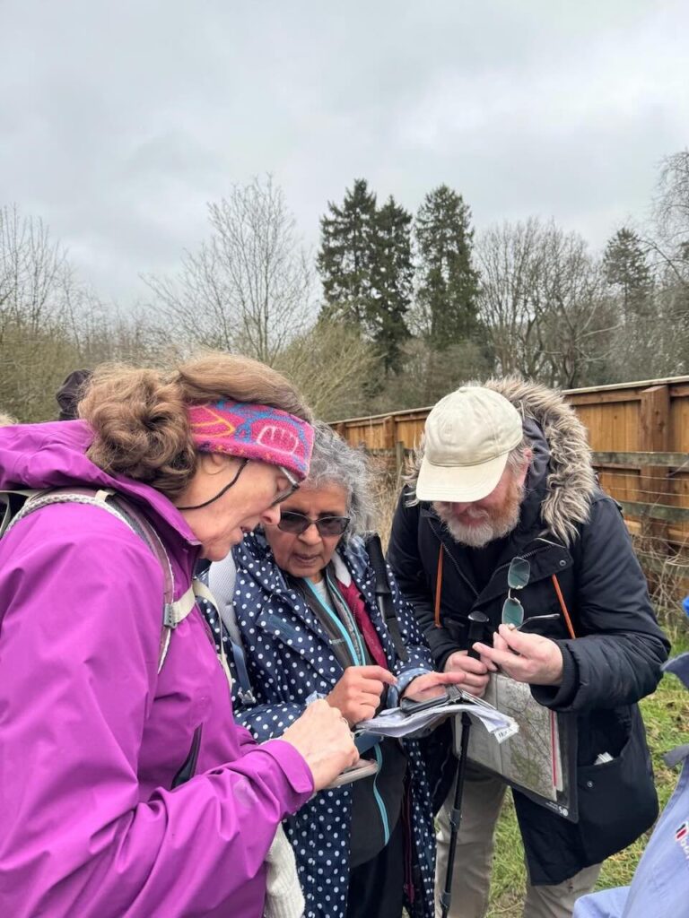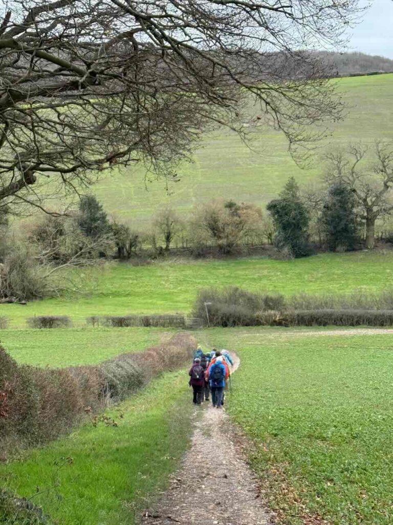 We left the canal path after 2 miles and then made our way to Sharpe’s Lane where we crossed the A251 safely. We then continued uphill on Sugar Lane to Bottom Farm which had some lovely views. We passed a really well constructed tree house on the way to the Granary. Here we turned right in the direction of Swing Gate Lane instead of taking the planned route in order to avoid a really muddy ploughed field. After a gentle ascent we found a suitable picnic spot.
