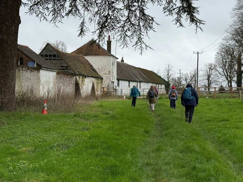 Refreshed once more, we were on our way again. It was interesting and puzzling to see the work being carried out on Haresfoot Farm. On the recce Jennifer and I had decided to go the long way round on a tarmac path towards Ashley Green but this time after struggling to find our way following the sign to Harriots End Farm I asked a couple of my fellow walkers if they were able to see the path on the app. I was assured there was a path but we got stuck in the farm again. Thanks to Mary we were soon back on route and arrived at The Golden Eagle pub in Ashley Green for refreshments.