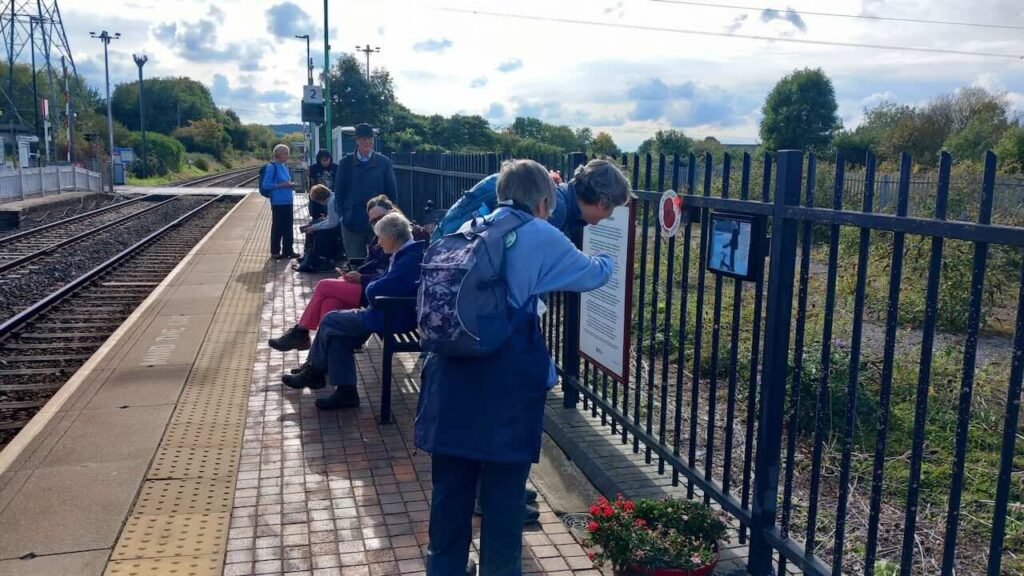 On the 200th Birthday of the first British railway train service ever, at Bedford station I met 9 polyramblers who arrived on the fast train from St Pancras. I had already met another previously on the slower train from Flitwick into Bedford. We made our way onto platform 1A, where the two coach Bletchley DMU soon pulled in. All 11 of us boarded this little train setting off for the Kempston Hardwick halt, 2 stops away.