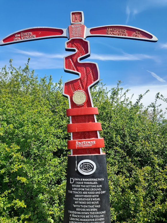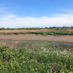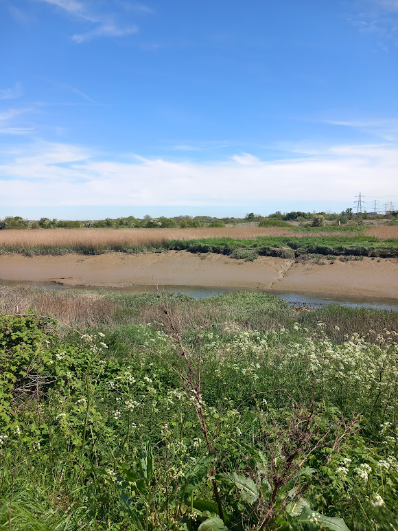 Although still April, the weather was sunny and warm for our Erith to Bexley walk, and I really appreciated Tizi’s kind offer of a sunhat to wear. After a little hiccup, we made it from the station to the path by the Thames, and started off on our waterside walk. The Queen Elizabeth II Bridge was often in view on this section. Firstly, we walked by the Thames, then by the River Darent, and finally the Cray, with its field of reeds.