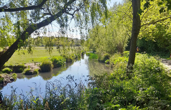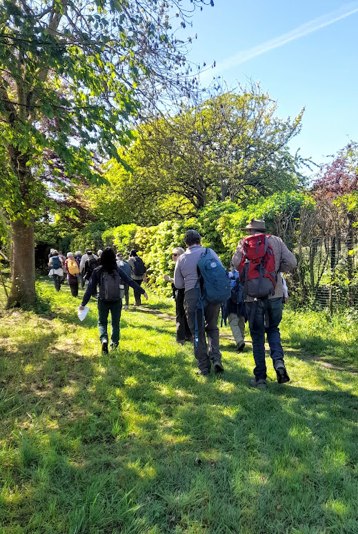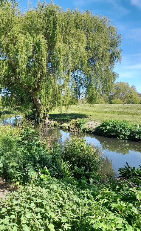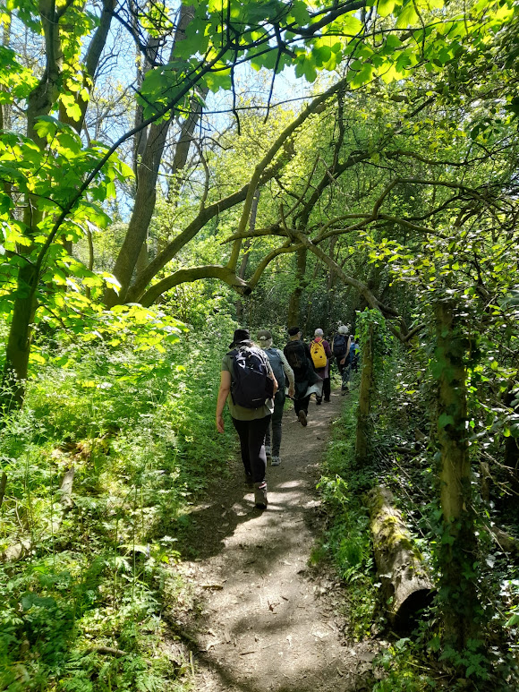 After lunch a bit of road walking was needed, before we escaped across a sports field, into trees and continued along the Cray, whose water looked really clear. We proceeded to cross over a railway and almost immediately under a major road. On arrival in Bexley, we passed an interesting old church (St Mary the Virgin) with an unusual spire which starts off as a pyramid, has an octagonal hat and a weather vane on top!