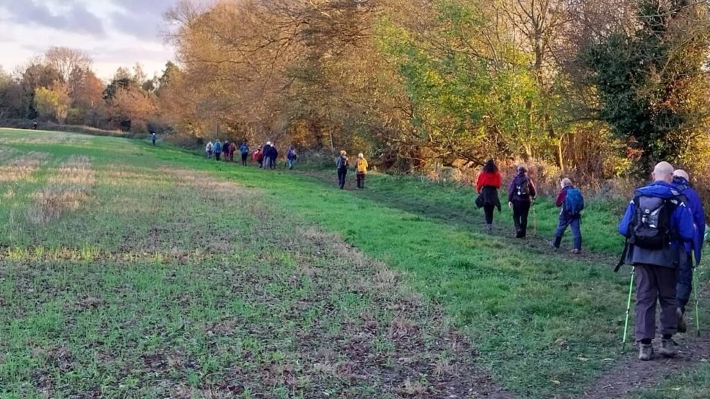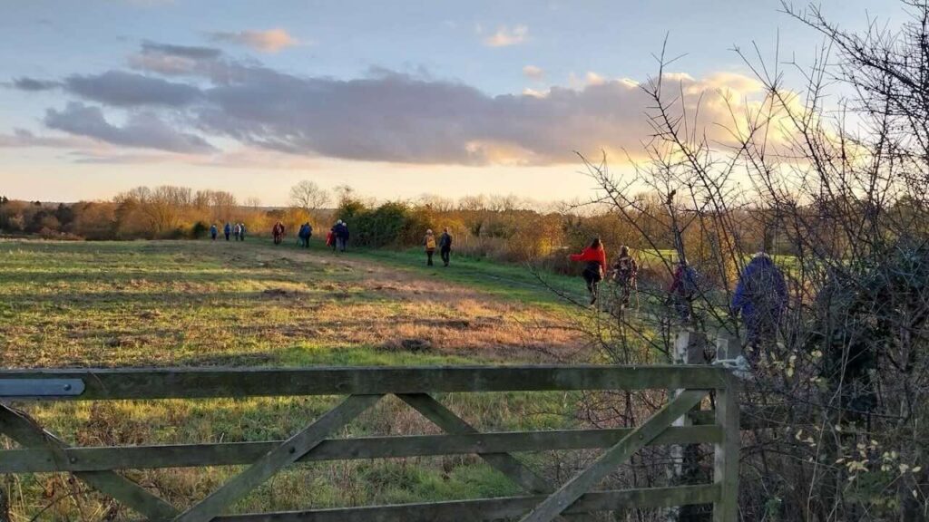 In another 20 minutes or so we were heading down a steep path with Filston Hall ahead of us at the bottom of the valley.  Then it was an easy walk back to Otford along a track between fields.   Soon enough we were back at the station before sunset.   I needn’t have worried so much about the long lunch!