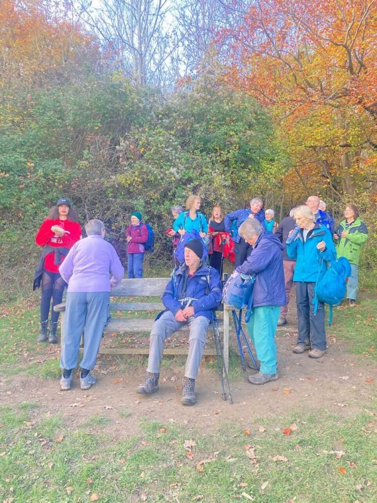 I was just about to start the briefing at Otford when snap!  I manage somehow to break my glasses.  Happily I can still read if I squint. Anyway,  it was very pleasing to have such a big turn-out, 21 in all, on what turned out to be a fine, sunny, November day.