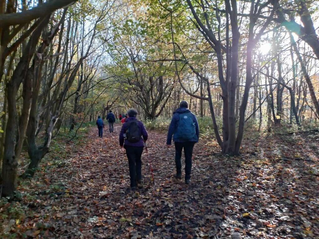 We headed straight up our first ascent; Otford Mount or ‘mud mountain’ as one of our group calls it.  There were lots of leaves on the path and there was some mud but the going was pretty good really.   I expect it will be a lot muddier later in the season.   Then we went through some beautiful woods descending to Magpie Bottom.   I had been delighted to see two Magpies there on the walkover but today they weren’t to be found – they were probably watching us from a nearby tree.