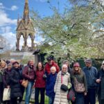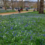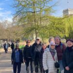 Following the meeting and a plentiful buffet lunch, 16 walkers set off to amble through the Royal Parks. The sky was a mixture of brilliant blue and a few grey clouds. Luckily we didn’t have a repeat of lasts year’s deluge. We passed through beautiful flower beds along the side of the Albert Memorial, crowds of tourists taking in the afternoon sunshine and heard the shouts of the demonstrators on what looked to be a peaceful march through the Hyde Park area.