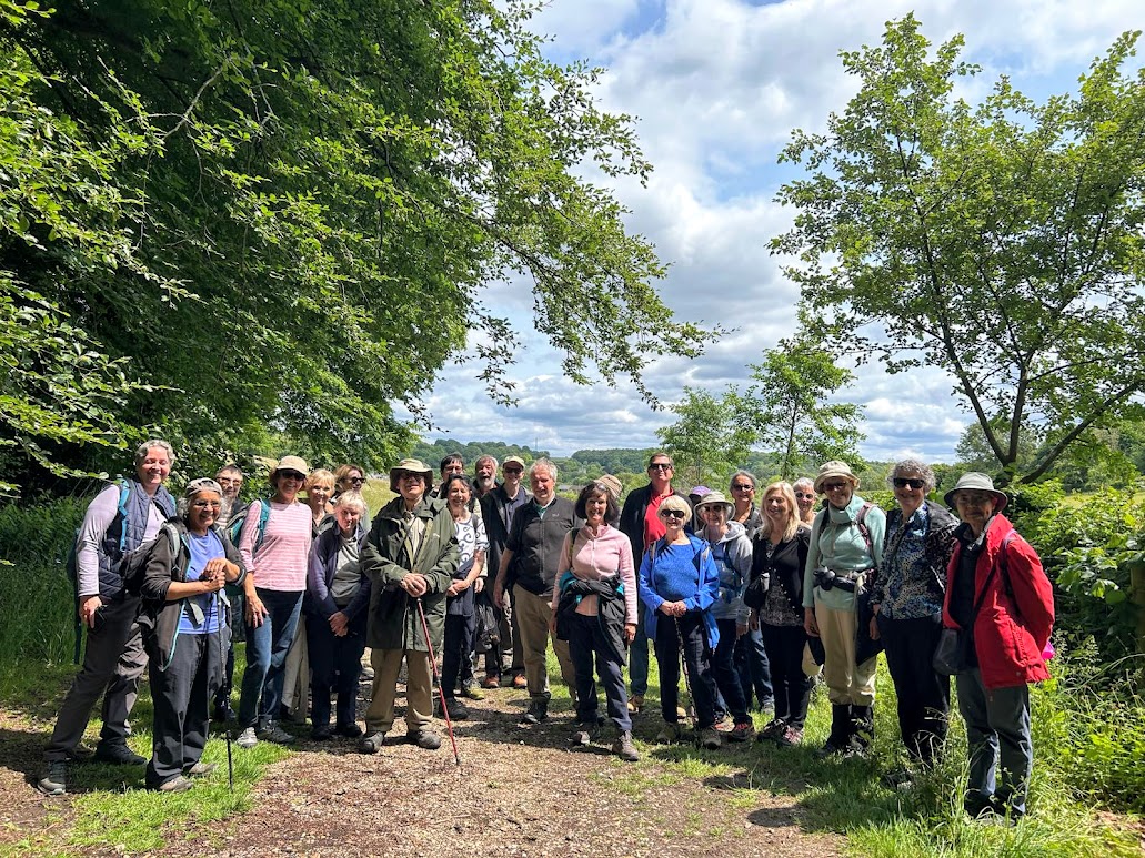 Nearly 30 Poly Ramblers gathered at Great Missenden station on a Sunday in early June for a short walk to whet our appetites for a traditional afternoon tea at Missenden Abbey, an event organised to mark the Club’s 140th anniversary. Although it was June the weather forecast was uncertain with rain threatened so everyone turned up in sensible walking gear. Plans by some to wear tea dresses were abandoned.