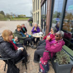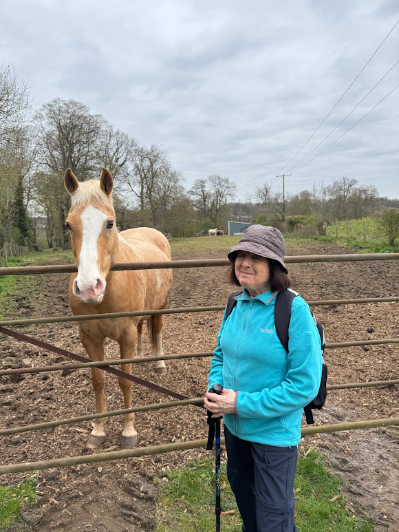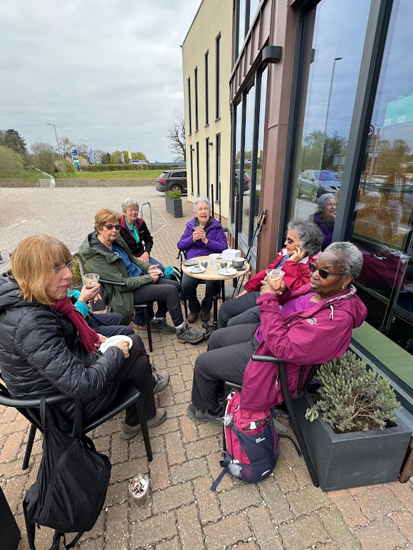 We continued our walk alongside fields, passing large houses and following Normans Lane through Ninning’s Wood. We went under the A1(M) though a tunnel into Mardley Wood. We followed the edge of the wood and saw many bluebell plants, but they were not ready to flower. We arrived in Woolmer Green and there were two options: pub or café in the chocolate shop.  Surprisingly, everyone opted for the chocolate shop.  We had a nice break, sitting outside drinking coffee/tea/hot chocolate, etc and eating cakes. Some of us did some last-minute Easter celebration shopping.