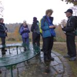 Another fine autumn walk enjoyed by 8 Polyramblers on a day which remained mild and misty, with only the odd spot of rain. At Box Hill and West Humble station, there was a very large walking party assembling but we set off and never saw them again. We walked through Denbies vineyard and up onto Ranmore Common with great views over Dorking and Box Hill. The trees were a glorious colour and we had a carpet of autumn leaves underfoot. Dropping down into the valley, we passed Milton Court, a Grade II listed 17thC house, now the UK HQ of an American company called Unum which offers insurance products to employers. Clearly a profitable business! Our lunch stop was Dorking where some of the group found a cafe and others headed for the pub known for its pies – they did not disappoint. We enquired as to their provenance but all that the barmaid could tell us was that”a lady brings them in.” The walk was such that people could do just the morning part, but in fact we all continued on the afternoon walk. This took us up past Rose Hill, an early 19thC estate of large villas built for the prosperous middle-classes, and then through the remnants of Deepdene estate. The house was demolished in the 1960s but some of the formal gardens are still visible. A circular route through Betchworth Park took us back to Dorking by 4pm just as the light was fading. There was time to say hello to a large black and white cat on the way to the station.