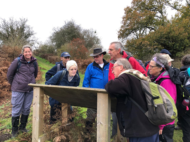 A grey day with some drizzle for this walk in the Hertfordshire countryside and woodland. At one point, there were 20 walkers on this ramble but numbers varied during the day. As I was walking to Cuffley station, I saw Martin outside Costa. I went to buy my ticket and expected Martin to turn up but he did not board the train. Therefore I was a bit puzzled when I jointed 13 Polyramblers on the train. With three more waiting at Hertford North Station, we walked up to Thieves Lane and entered Panshanger Park which, in that area, consists of fields and woods. We crossed the B1000, leaving the Park and continued through farmland and woodland with nice autumn colours. We passed Bacon’s Farm and soon arrived in Tewin where we had lunch and a warm welcome at the Rose and Crown pub. We were joined by Martin and Sunita who had been drinking coffee in Costa and had missed the train but managed to make their way to Tewin. Mystery solved. And thank you Google map.