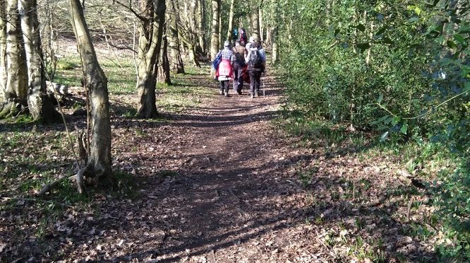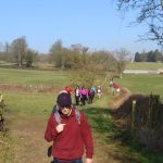 Unseasonably warm, sunny weather for a 9 mile walk in the Oyster card zone promised a high turnout, but we weren’t expecting quite as many as the 31 Poly Ramblersand one dog who gathered at Amersham station on Saturday. It was good to welcome back Lucy who hasn’t been out in a while. The early morning mist had just cleared and we headed down through the woods to Old Amersham, passing through the Memorial Gardens where we saw the WW1 floral display of two bi-planes, a warship (HMS Dreadnought) and the lone soldier. We left town and headed across fields (not too muddy after a dry spell). The route took us gently uphill, (great views of beautiful Buckinghamshire) through woods, and then across fields and downhill through a cattle farm. More lanes and field edge paths and before long we reached the newly refurbished White Hart at the top of Chalfont St Giles. Luckily half the group had brought their own food and trooped down the hill to the village green leaving a manageable number to occupy most of the outside tables at the pub. We were joined by Hilary (on the injury list) and Clive. After a leisurely and very pleasant lunch in the sunshine we joined the others in the village and the group (minus three who decided to catch the bus) resumed our walk to Little Chalfont, via some llamas, a golf course and finally some impressive properties on on the outskirts of the village. A very pleasant and not too taxing day out.