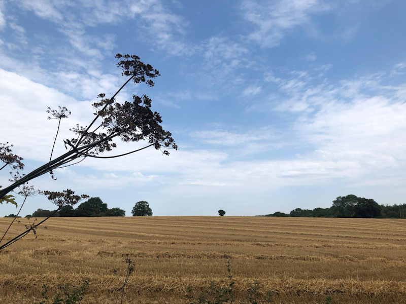 Ten Polyramblers and two leaders met at Brookmans Park station on a very hot day. Ladies were quite envious of Dolly who turned up in a long floaty dress. After a safety briefing and a warning that we would cross the A1 twice (over a bridge), one group led by Tony (roped in to help) left and the second group led by Dominique left five minutes later. We headed west towards the back of the Royal Veterinary College mostly under the cover of hedgerows which shielded us from the heat. We crossed Mimmshall Brook and the A1 and then entered Mymmshall Wood going steadily but gently uphill. At The Grange, we turned north through Hawkshead Wood and, in a field on the hedge of the wood, Dominique’s group met up with the second group who had nearly finished their picnic. They left and made their way to St Mary’s Church in North Mymms and crossed the A1 to reach Water End. They continued to Brookmans Park through fields and a country late and they ended the walk with a drink in The Brookmans. The other group followed the same way but stopped to have a look in St Mary’s churchyard and then had a drink in The Woodman at Water End before walking to Brookmans Park station.