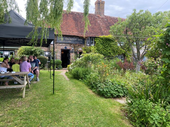 A stone’s throw from the church was the Cricketers Arms, an eighteenth pub where we sat in the garden resplendent with summer flowers and were served with drinks at our table. Ida and Stephen decided to have fish and chips and pretty good they looked too.